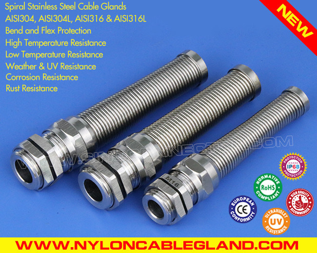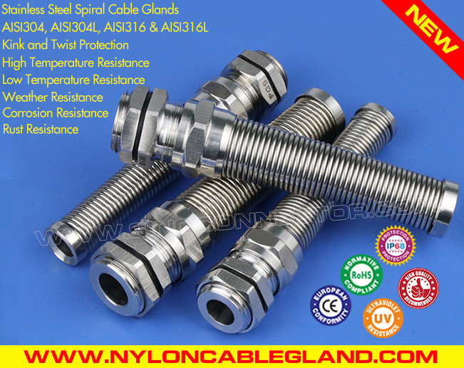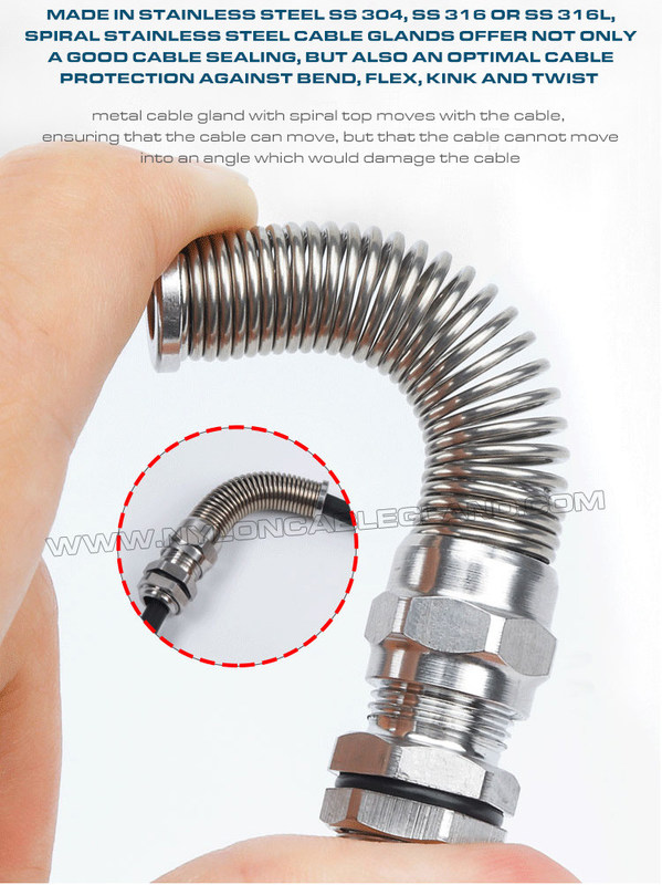 Die hermetischen metrischen IP68-Kabelverschraubungen M12~M50 aus Edelstahl Typ 304/316/316L mit Knick- und Biegeschutz bieten die Vorteile einer hohen Schlagfestigkeit und eines großen Klemmbereichs, einer hohen und niedrigen Temperaturbeständigkeit und Witterungsbeständigkeit und sind mit einer zusätzlichen Spiralschutzfeder ausgestattet und verfügen über die Fähigkeit zur chemischen Beständigkeit, Korrosionsbeständigkeit und Hitzebeständigkeit sowie die Fähigkeit zu hoher Zugfestigkeit, hoher Zähigkeit, guter Wasserbeständigkeit, ausgezeichnetem Biegeschutz und langer Lebensdauer.