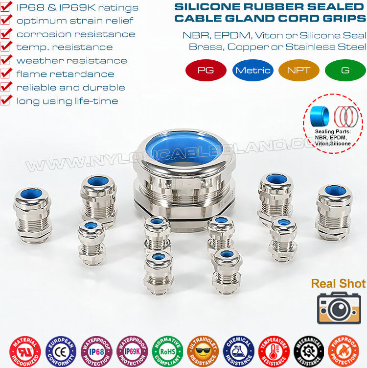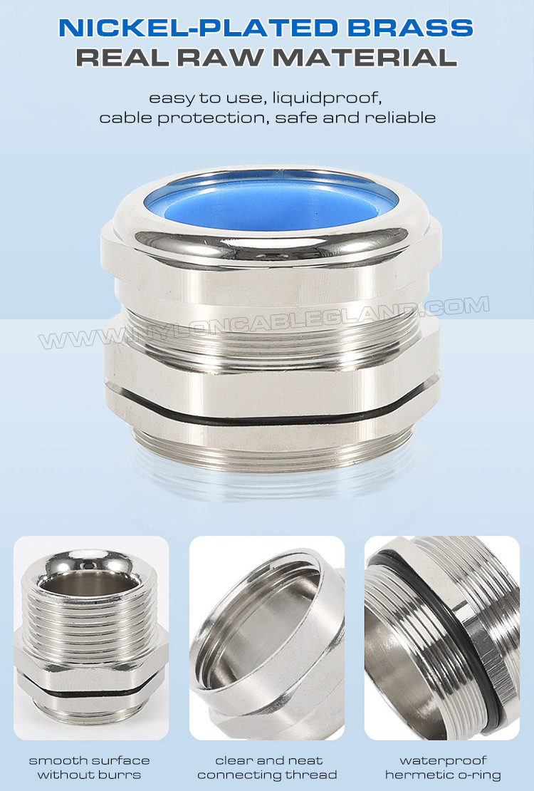 Einstellbare Wasserdichte IP68 PG Kabelverschraubungen Messing Kupfer mit blauen Silikondichtungen und O-Ringen sind aus nichtmagnetischem Messing oder Kupfer und sind in PG-Verbindungsfäden erhältlich.Sie sind so konstruiert, daß Kabel in elektrische Geräte oder Bauteile, die eine Erdung ermöglichen, eingeführt werden können., Bindung, Isolierung, Dichtung, Aufbewahrung und Dehnungsentlastung sowie mechanische Stützungen für nicht gepanzerte Kabel und Leitungen.