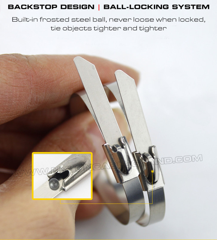 | Produktbezeichnung: | 7.9 mm selbstsichernde Metallkabelbinder, 100–1000 mm lange Schlauchbinder Edelstahl 304/316/316L mit Kugelverschluss |