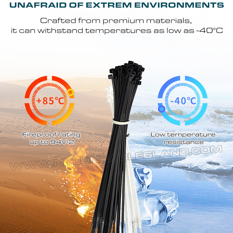(1) Hervorragende Kälteschockbeständigkeit: Dies ist der größte Vorteil von kältebeständigen Nylon-Kabelbindern. Sie behalten ihre Zähigkeit auch bei extrem niedrigen Temperaturen und verspröden oder brechen nicht so leicht.